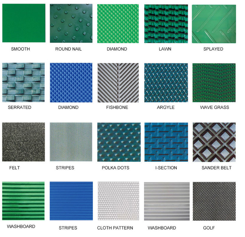PVC pattern conveyor belt Wear-Resistant Rough Top conveyor belting in green/ black/blue various colors are available